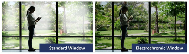 Have you ever heard of smart windows? Yes, there is a “smart” version for everything. Smart windows use a small amount of electricity to change its tint and transparency, thus selectively reducing or admitting outdoor heat based on the time of day. This provides immense grid benefits and reduces HVAC dependence. Energy efficiency benefits aside, a Department of Energy (DOE) report on electrochromic windows noted intangible benefits, such as improved circadian rhythm, reduced seasonal affective disorder, greater productivity, and more.