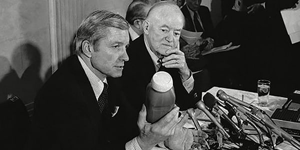Sens. Charles Percy (left) and Hubert Humphrey at a press conference on their new coalition.