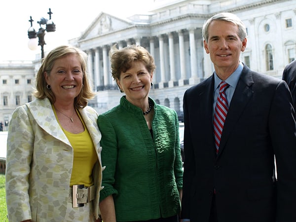 Alliance President Kateri Callahan (left) joins Sens. Jeanne Shaheen and Rob Portman for the bill’s introduction.