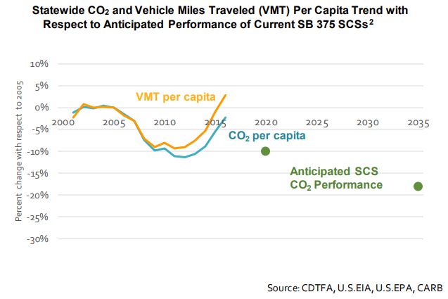 Reforming development and planning is not an aspiration, the report argues, but a necessity: “With emissions from the transportation sector continuing to rise despite increases in fuel efficiency and decreases in the carbon content of fuel, California will not achieve the necessary greenhouse gas emissions reductions to meet mandates for 2030 and beyond without significant changes to how communities and transportation systems are planned, funded, and built.”