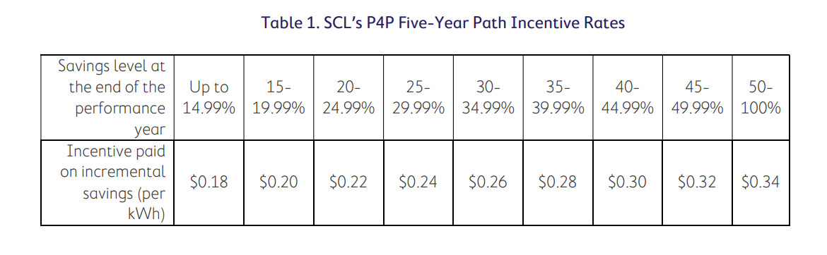 Table 1. SCL’s P4P Five-Year Path Incentive Rates