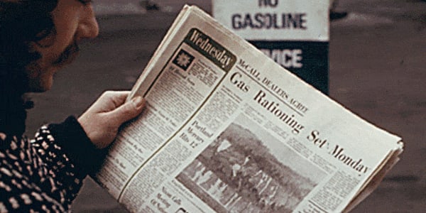 Members of the Organization of Arab Petroleum Exporting Countries impose an oil embargo on the United States during the 1973 Arab-Israeli war. Oil prices increase by up to 400% and gas shortages occur across the country.
